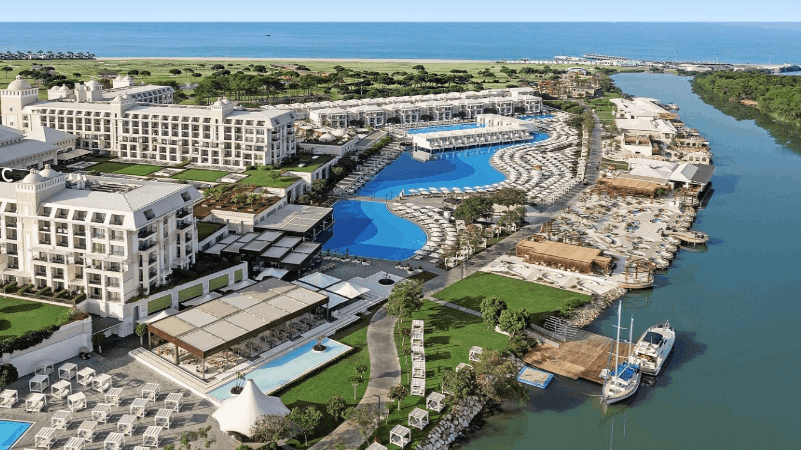 Das luxuriöse Hotel in Belek erstreckt sich über 170.000 m² und liegt idyllisch am Beşgöz-Fluss, umgeben von Pinienwäldern – ideal für einen erholsamen Urlaub.